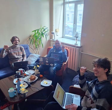 На этой неделе сотрудники G1PS Томас (председатель), Рокас (внутренние коммуникации) и Эмилис (внешние коммуникации и координация консультаций по трудовому праву) сели за стол серьезно поговорить.