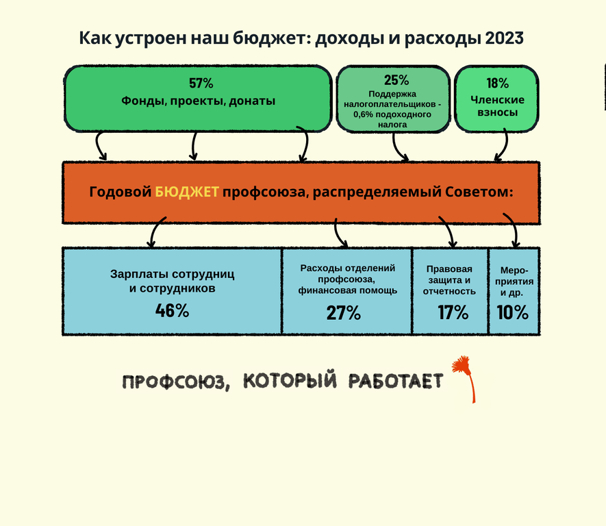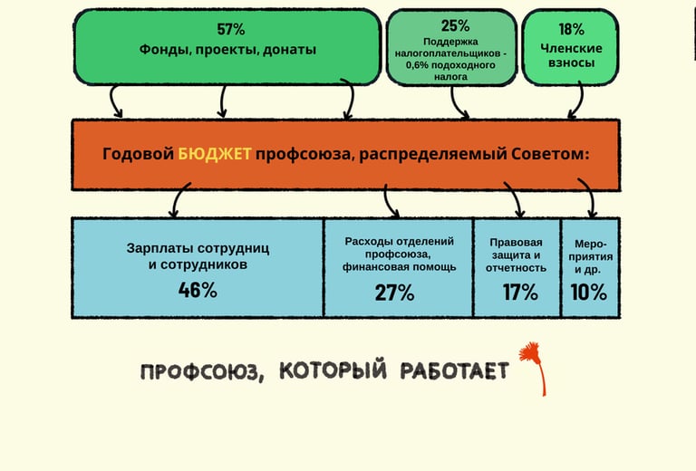 Совет распределяет оплачиваемые должности, утверждает просьбы членов о финансовой поддержке, принимает новых членов, занимается коммуникацией и другими ключевыми вопросами организации. Заседания Совета проводятся ежеквартально и открыты для всех членов. Помимо участия в работе Совета, председатель координирует общую деятельность профсоюза и представляет организацию в обществе.