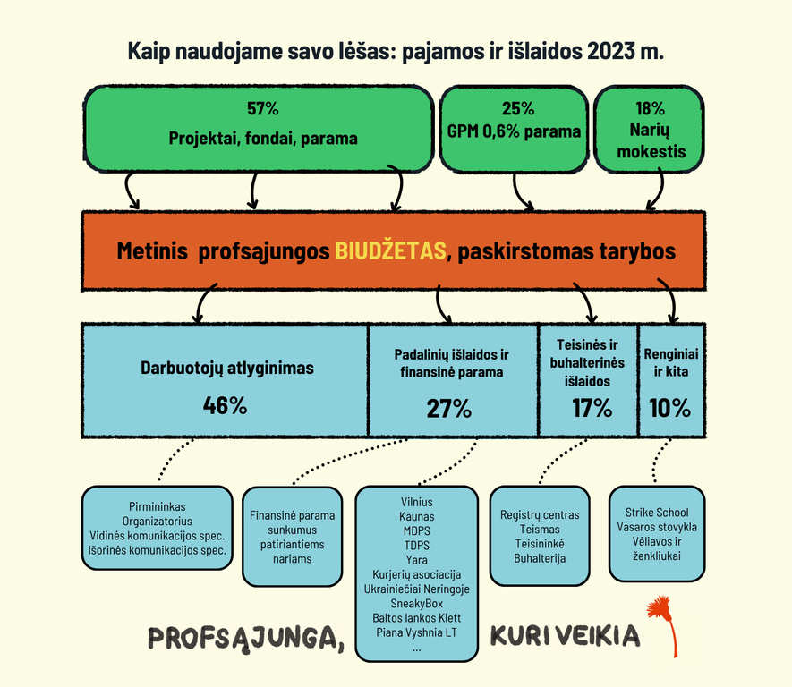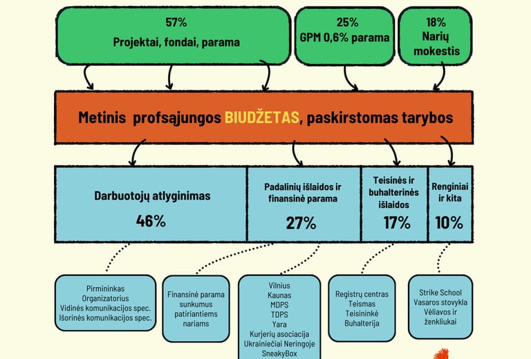 Taryba skiria apmokamus darbus, tvirtina narių paramos prašymus, priima naujus narius, rūpinasi komunikacija bei sprendžia kitus esminius organizacijos klausimus. Tarybos posėdžiai vyksta kartą į ketvirtį ir yra atviri dalyvauti visiems nariams. Pirmininkas, apart dalyvavimo tarybos veikloje, dar koordinuoja bendrą profesinės sąjungos veiklą ir atstovauja organizaciją viešumoje.